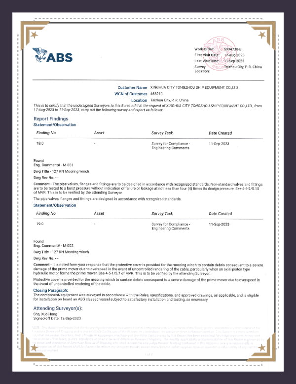 Úsáidtear ár winches uathoibrithe go forleathan i gcineálacha éagsúla long, lena n-áirítear longa lasta, tancaeir ola, longa coimeádáin, etc., agus bhuaigh siad muinín agus moladh ár gcustaiméirí. Trí nuálaíocht teicneolaíochta leanúnach agus feabhsú cáilíochta, táimid tiomanta do réitigh trealaimh long níos éifeachtaí, níos cliste agus níos sábháilte a sholáthar do chustaiméirí, ag cabhrú le cuideachtaí loingseoireachta éifeachtúlacht oibriúcháin a fheabhsú, costais a laghdú, agus buntáistí iomaíochta an mhargaidh a fháil.